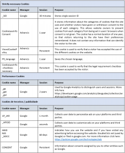 This information table may occasionally not include a cookie, label, or similar device as a result of updating, although these are always devices for purposes identical to those contained in this table.