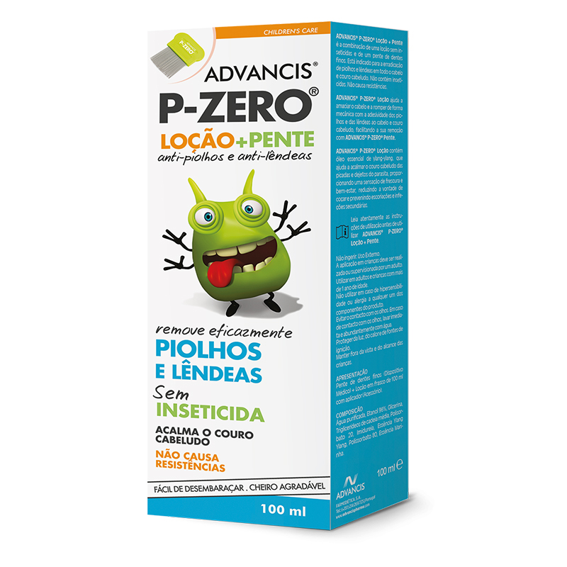 Advancis® P-Zero® Loção ajuda a amaciar o cabelo e a romper de forma mecânica com a adesividade dos piolhos e das lêndeas ao cabelo e ao couro cabeludo, facilitando a sua remoção com Advancis® P-Zero® Pente.